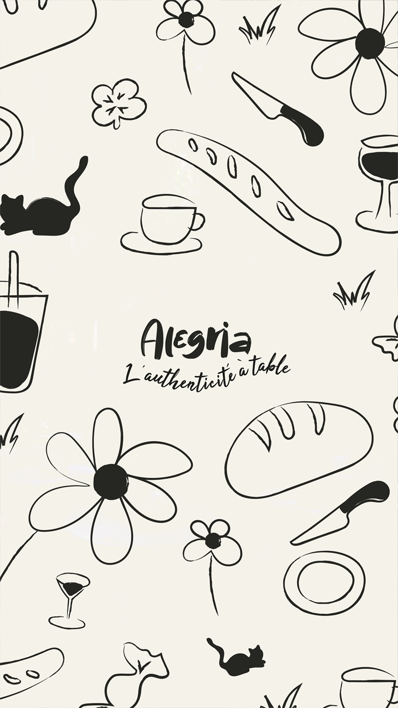 Alegria marie l’élégance brute du fait main à une direction graphique épurée, en beige et noir, pour créer une ambiance à la fois chaleureuse et contemporaine. Cette identité visuelle reflète l’authenticité des instants partagés, la beauté des imperfections et le goût des choses simples, tout en affirmant une esthétique raffinée. Chaque élément évoque l’émotion d’un repas sincère, où l’humain, le lien et le geste priment sur le superflu.